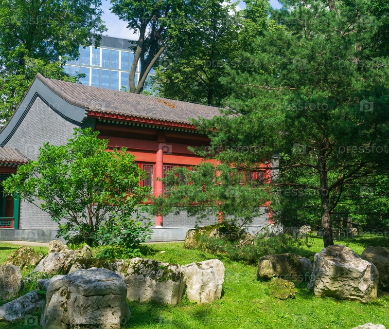 Традиционная китайская архитектура на фоне современных городских зданий