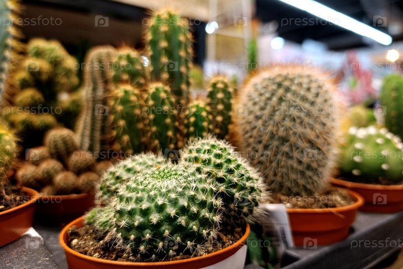 Различные кактусы в местном супермаркете.Покупка комнатных растений