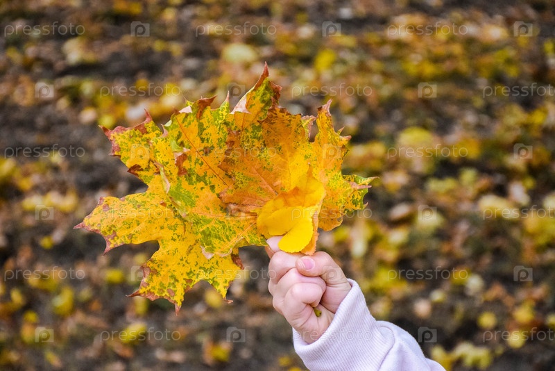 Букет осенних листьев в руке ребенка