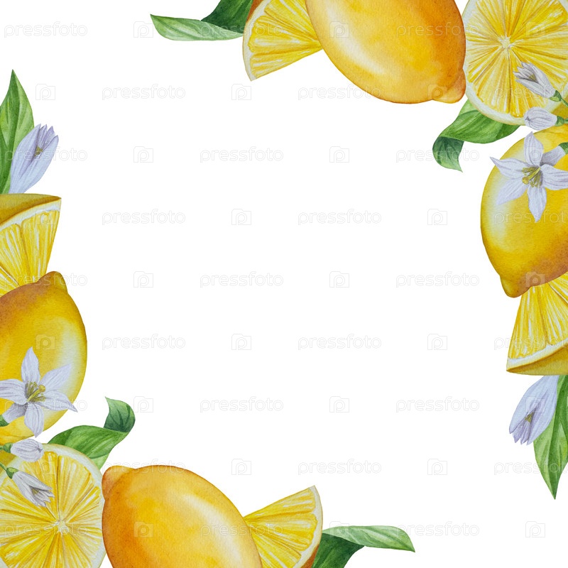 Набор акварелированного лимона.Половина, лом, зеленый лист, ветвь летнего тропического фрукта.Антивирусные продукты для здоровья.Идеально подходит для домашнего декора, изготовления открыток, меню коктейлей