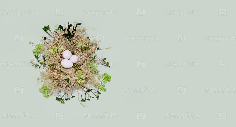 Гнездо в зеленых сушеных цветах