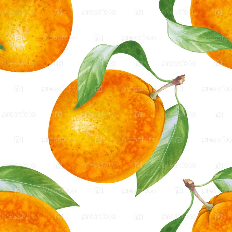 Бесшовный акварельный фон с рукописными апельсинами. бесшовный узор с яркими фруктами и зелеными листьями на белом фоне. для посуды, текстиля, упаковки, обоев