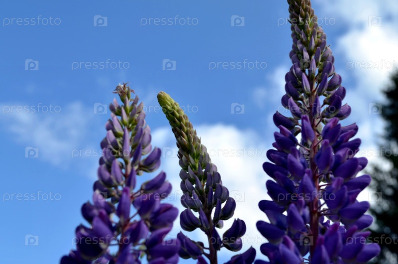 Люпины на фоне голубого неба
