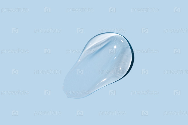 текстура глицерина. прозрачный сывороточный тампон на синем фоне. жидкий гелевый увлажнитель с пузырьковыми макросами