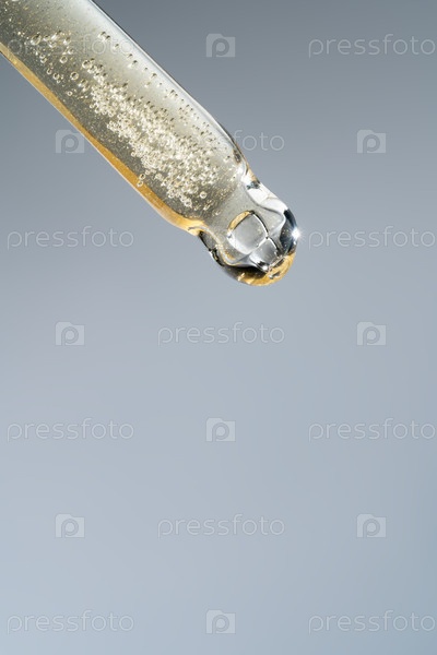 Пипетка с сывороткой, гелем, маслом или другим косметическим продуктом со падающей каплей. макроконвергенция