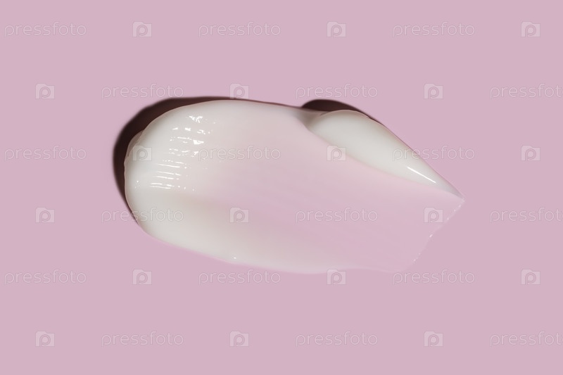 Текстура белого крема на розовом фоне. Увлажняющий крем закрывается. Louchen Swach. Продукт по уходу за кожей - это мазок красоты. Образец солнцезащитного средства SPF на розовом фоне