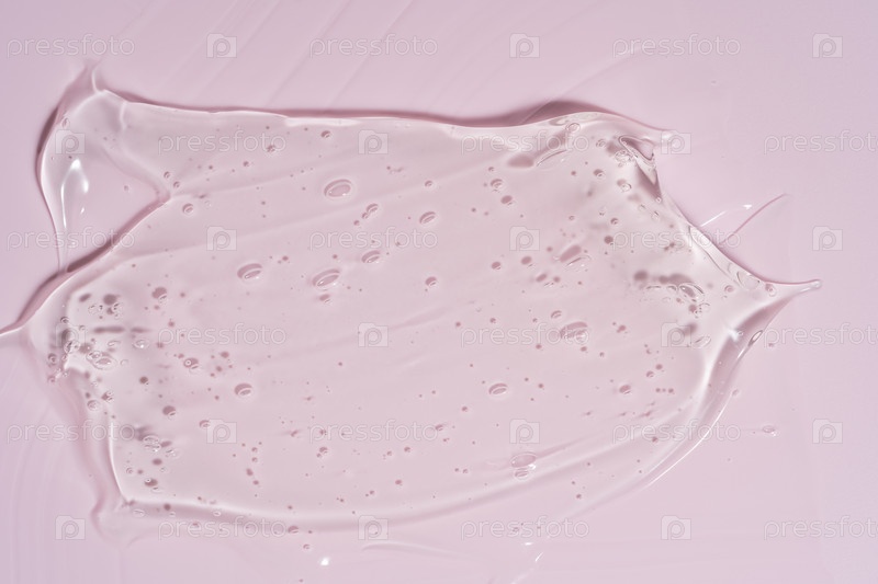 Близкий снимок розового жидкого косметического геля или макияжа из сыворотки с глянцевой, блестящей текстурой на гладном розовом фоне