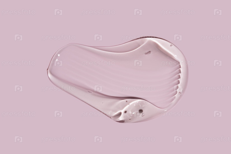 Близкий снимок розового жидкого косметического геля или макияжа из сыворотки с глянцевой, блестящей текстурой на гладном розовом фоне