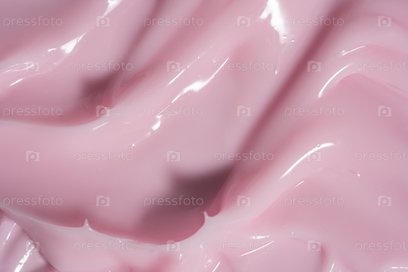 Текстура розового косметического крема, лосьона по уходу за кожей на пастельном фоне. Крем для лица, увлажнитель тела, волосатый тампон. Кремовый косметический продукт Closeup