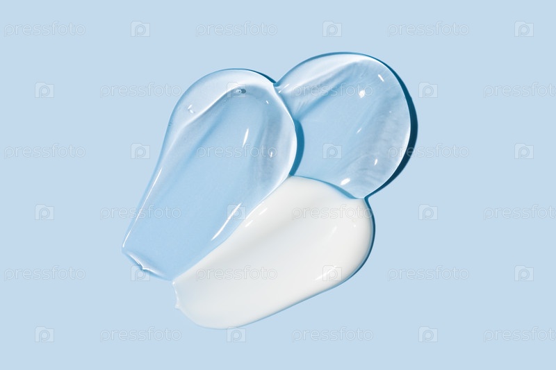 успокаивающий крем лосьон увлажняющий гель на синем фоне. уход за кожей и продукт для красоты тела. жидкий гел косметические пятна