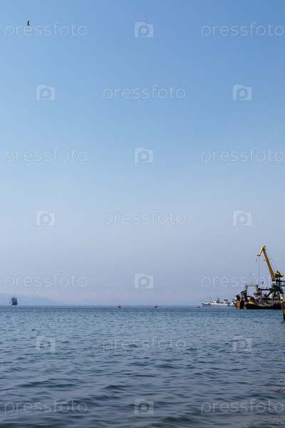 Кран и корабль в заливе Петропавловск-Камчатский