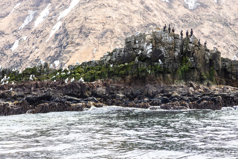 Успокаивающие птицы-гильмоты на побережье залива Авачха