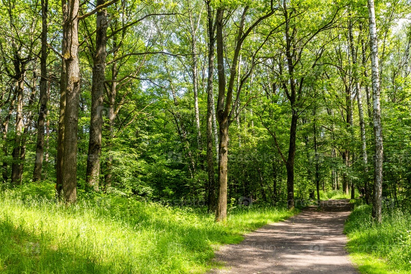 Дорога к лугу в лесу городского парка