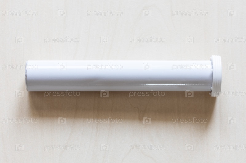 Белая цилиндрическая трубка на деревянной доске