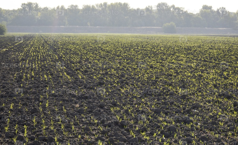 Даже ряды культур в сельскохозяйственном поле. выращивание пшеницы, ячменя, ржи. продовольственная безопасность агробизнеса