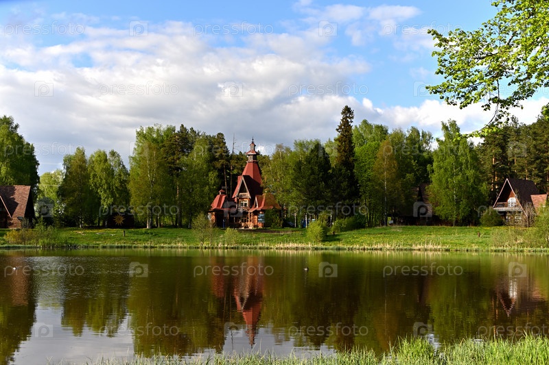 Красивая территория лесного парка с озерами в Костроме