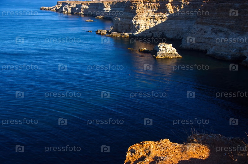Вид на небольшую бухту с маленьким островом возле мыса Фиолент