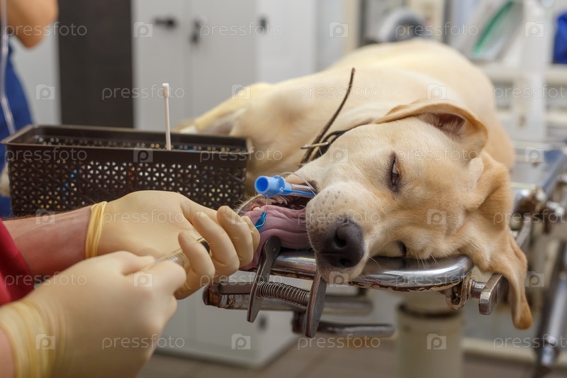 Собака перед операцией вставляла трубку для дыхания и вентиляции, искусственная вентиляция легких во время анестезии