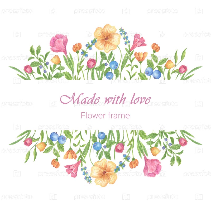Праздничная горизонтальная цветовая рама с пространством для текста. акварельные ботанические иллюстрации