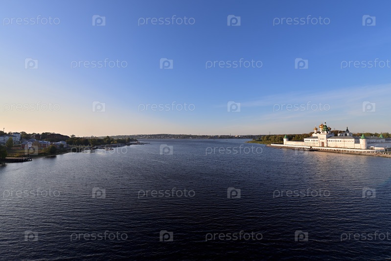 Вид с моста через реку Кострому до слияния рек Костромы и Волги, а также монастыря Ипатьева
