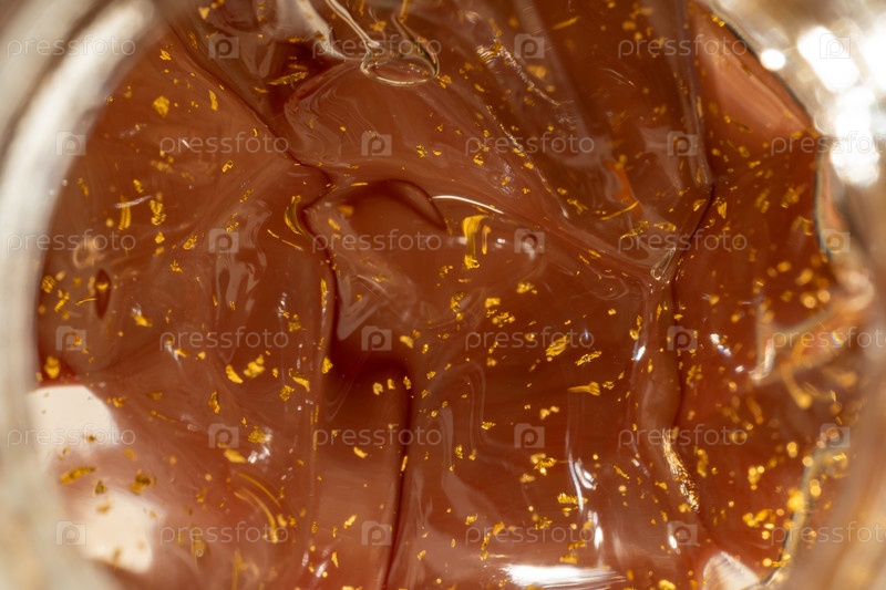 Фон текстуры 24-фунтовый крем по уходу за кожей с золотыми частицами для старения кожи.Презентация макротекстур косметических изделий