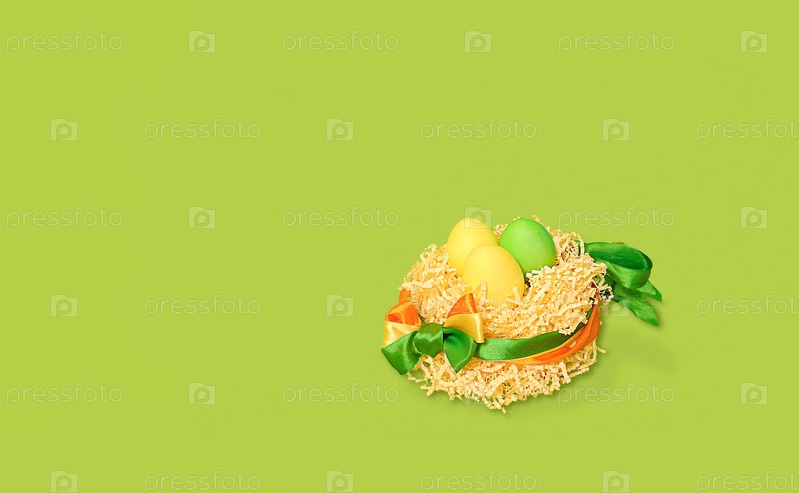 Искусственное гнездо с цветными яйцами