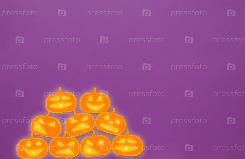 Тыквенные фонари на фиолетовом фоне