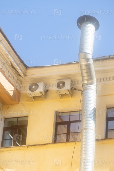 Кондиционеры установлены на фасаде здания.Устройство для комфортного проживания в жаркую погоду