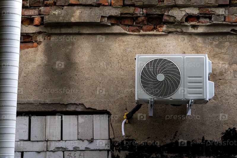 Кондиционеры установлены на фасаде здания.Устройство для комфортного проживания в жаркую погоду