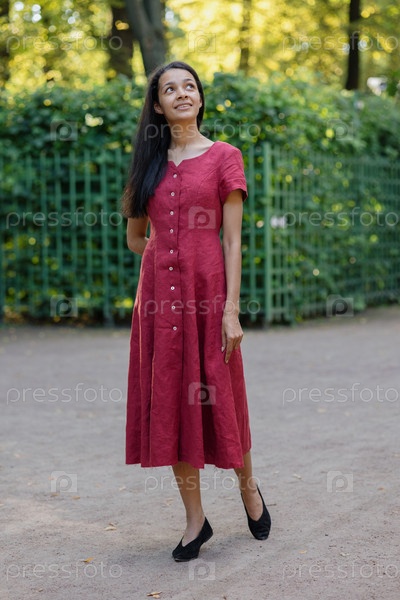 Молодая афроамериканка в бургундском макси-шорте - очаровательная модель, позирующая в парке