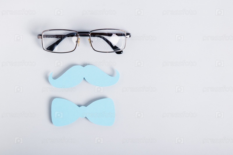 Концепция здоровья с усами, очки, бумажные усы и галстук-бабочка на синем фоне