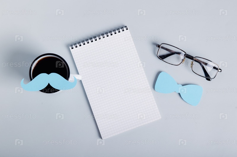 Усы на кофейной кружке, блокнот, галстук и очки, счастливый день отца