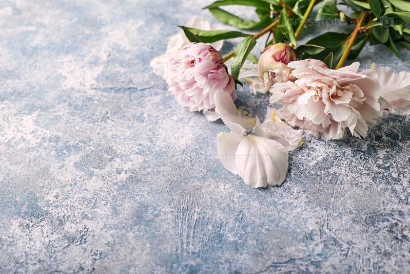 Красивые розовые цветы пионки на синем фоне