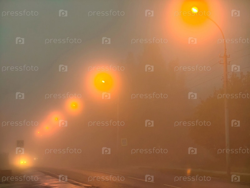 Дорожные столбы в тяжелом утреннем тумане