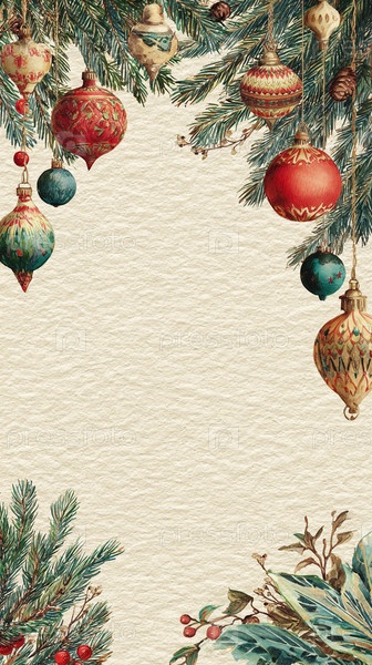 Радостные Рождество и Счастливый Новый годs Eve Postcard. Иллюстрация с копировальным пространством, праздничный фон со скицовыми элементами ботаники