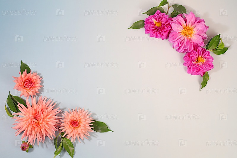 Красивые цветы далии на светлом фоне, абстрактные цветочные аранжировки и осенние натюрморты с сезонными цветами, фон и баннер для экрана, минималистическая концепция праздника, поздравительная открытка