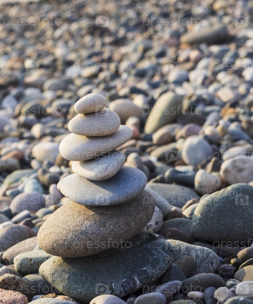 Кэрн из гальки на пляже.Концепция