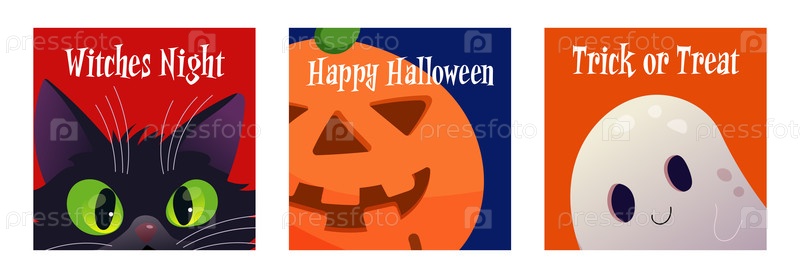 Искусство для празднования Хэллоуина с кошками, тыквами и жуткими призраками для праздников