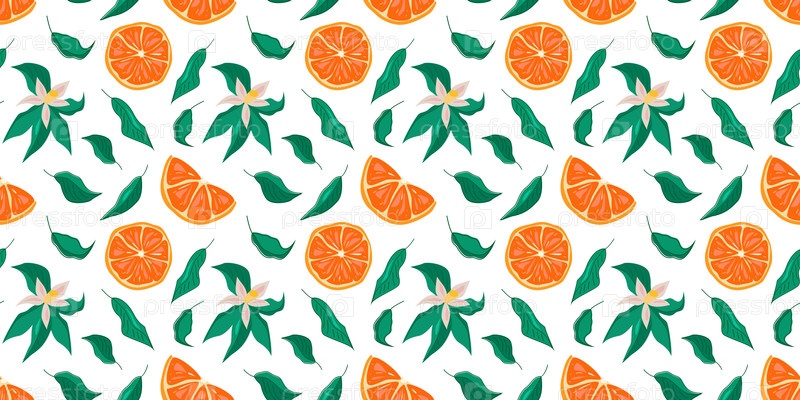 Этот яркий рисунок показывает апельсины, сочные ломтики и свежие зеленые листья на прозрачном белом фоне