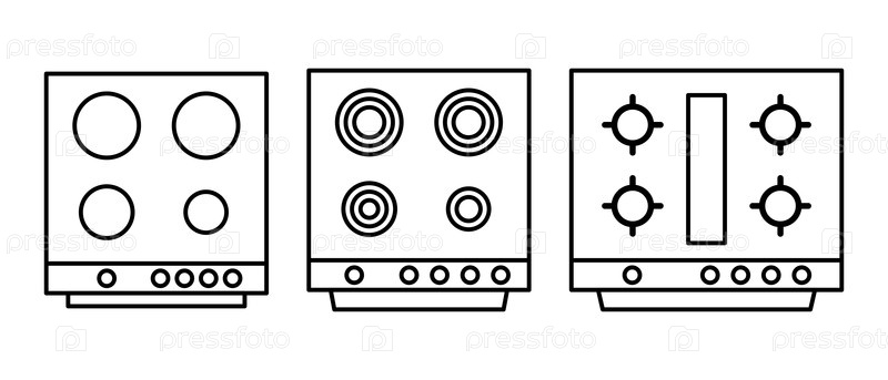 Набор кухонных печей с горелками, ручками и кухонными поверхностями в стиле контуров, идеально подходит для кулинарных проектов и дизайна бытовой техники