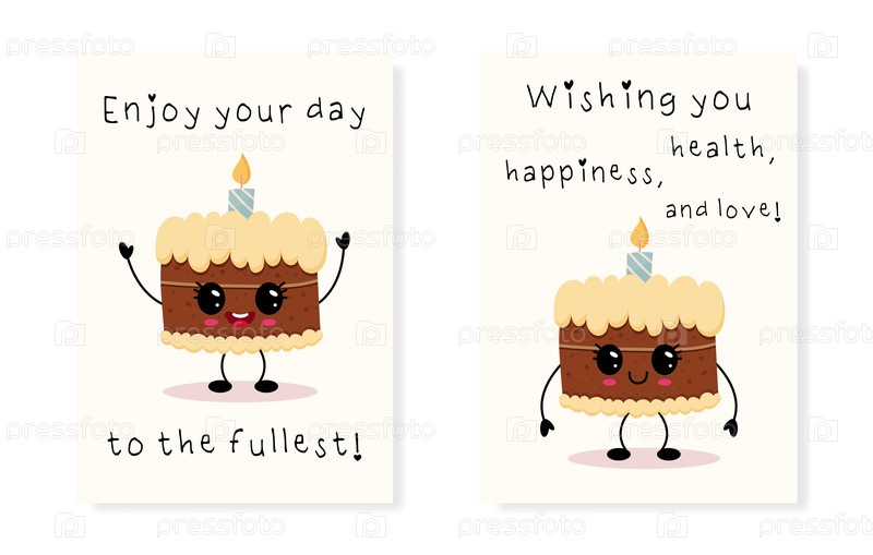 Очаровательный милый мультфильмовый торт, с теплыми пожеланиями на день рождения и радостными сообщениями