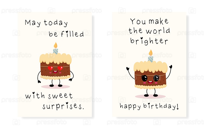 Милые открытки с тортом на день рождения с кавайскими символами