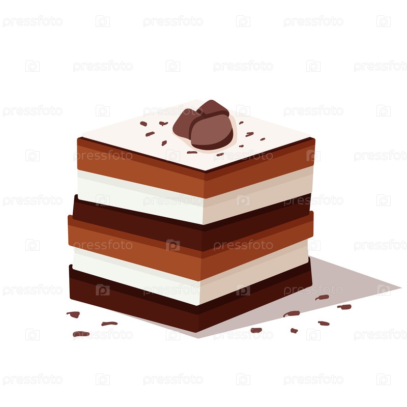 Иллюстрация шоколадного слоевого торта с наполнителем сливочной смесью в плоском стиле, идеально подходит для меню, пекарских плакатов, наклейки и праздничных дизайнов