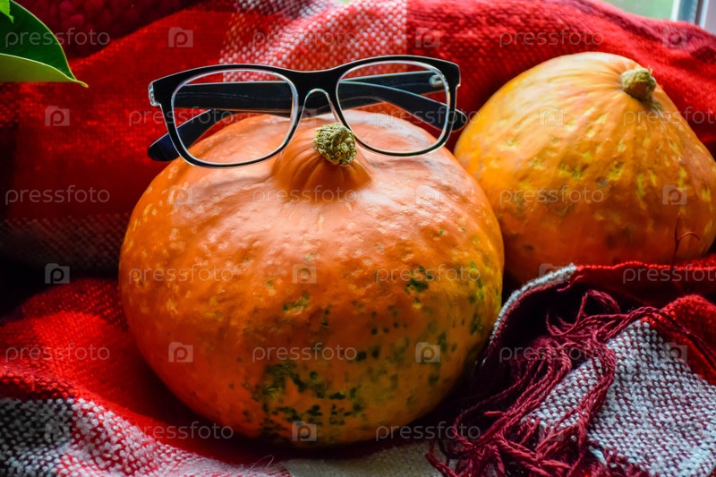 тыква лежит на пледе