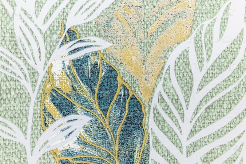 Современный рисунок тропического листа с текстурой акварели и золотыми деталями, успокаивающая цветовая палитра