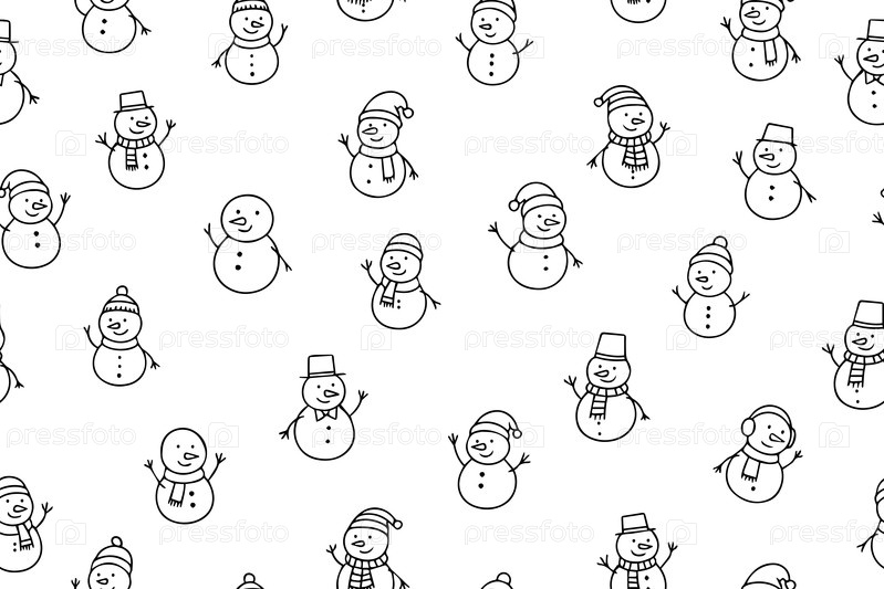 Бесшовный рисунок с милыми царапинами снежных шаров. Снеговики на белом фоне. Дизайн для праздничных тем, детских проектов и упаковки. вектор
