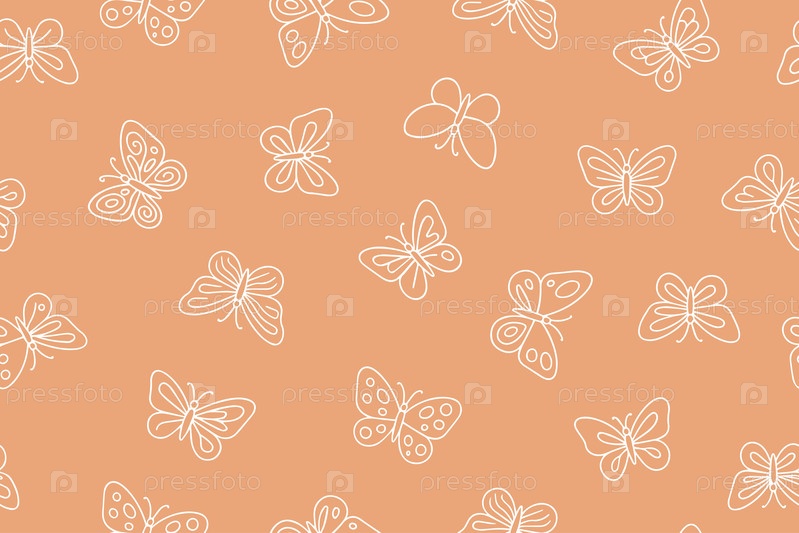 Бесшовный рисунок с белыми бабочками разных форм в стиле doodle на оранжевом фоне Модный дизайн для творческих проектов Иллюстрация
