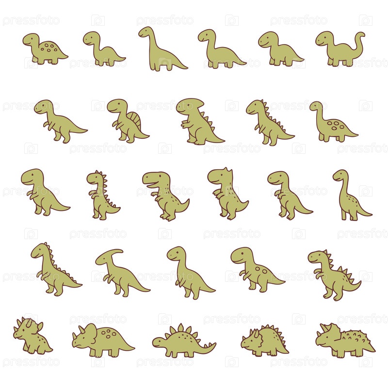 Очаровательные динозавры.Зелёные динозавры ручной живописи