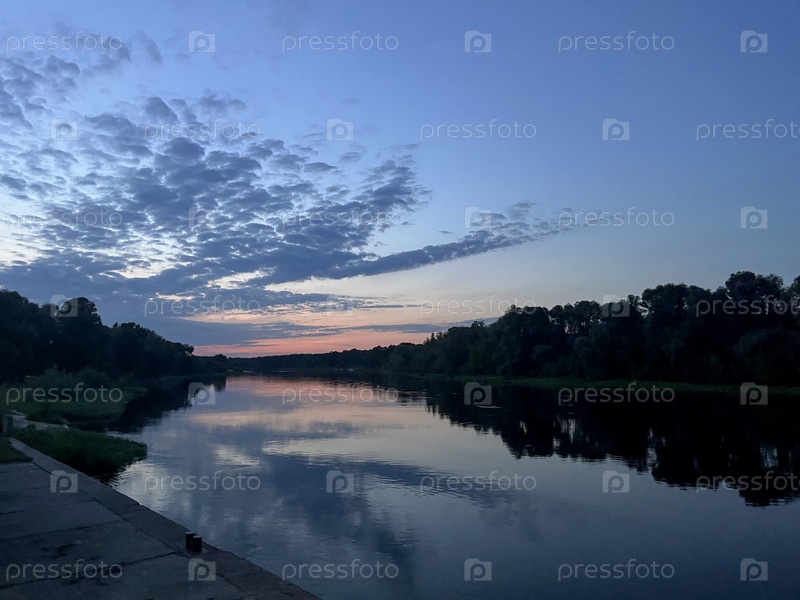 Красивый летний закат над рекой Березиной в Светлогорске, Беларусь