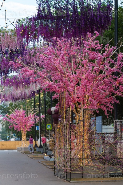 Украшенная улица в центре Новосибирска рано утром